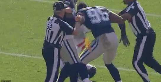 In the early minutes of the contest, Cowboys defensive lineman David Irving and Browns center Cameron Erving got into a fight following a third down play.
