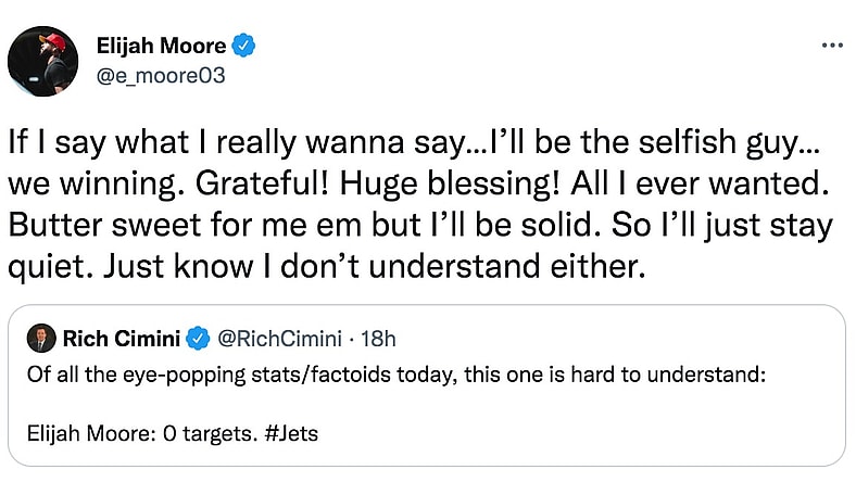Apparently, this is not sitting well with Moore. According to NFL Media’s Ian Rapoport, Moore has requested a trade from the Jets’ organization. This comes after the Jets excused Moore from practice earlier on Thursday for “personal reasons.” It also comes after some interesting social media activity on the part of the youngster.