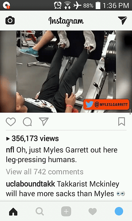 Mckinley responded to this NFL.com Instagram post that showed rookie No. 1 overall pick Myles Garrett working out.