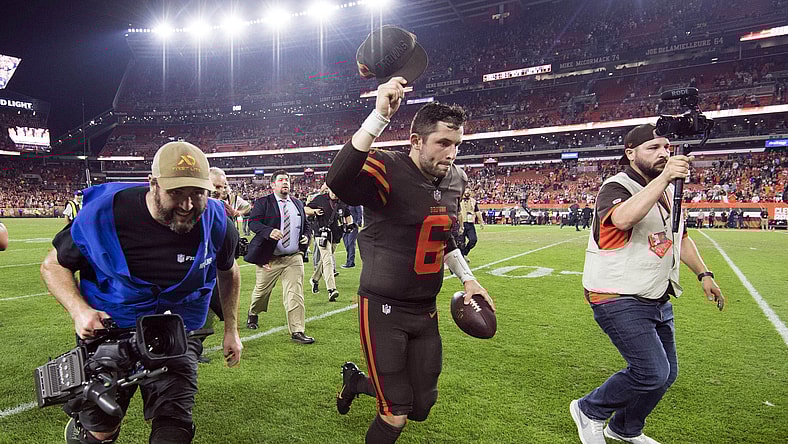 Of all the things to nit-pick about. Baker Mayfield had just won his first NFL game and handed the Cleveland Browns their first win in 635 days. Afterward, he came out of the locker room for an interview on NFL Network, and like many young people these days he was messaging someone on his phone.