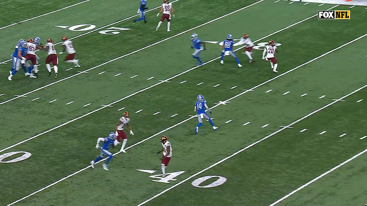 The play design worked. They fooled the Washington secondary, so they had three guys following a decoy receiver. This isn’t a tough throw for Goff. St. Brown picks up more than 30 yards after the catch. St. Brown also broke a big run on a jet sweep later in the game, not a deep route.