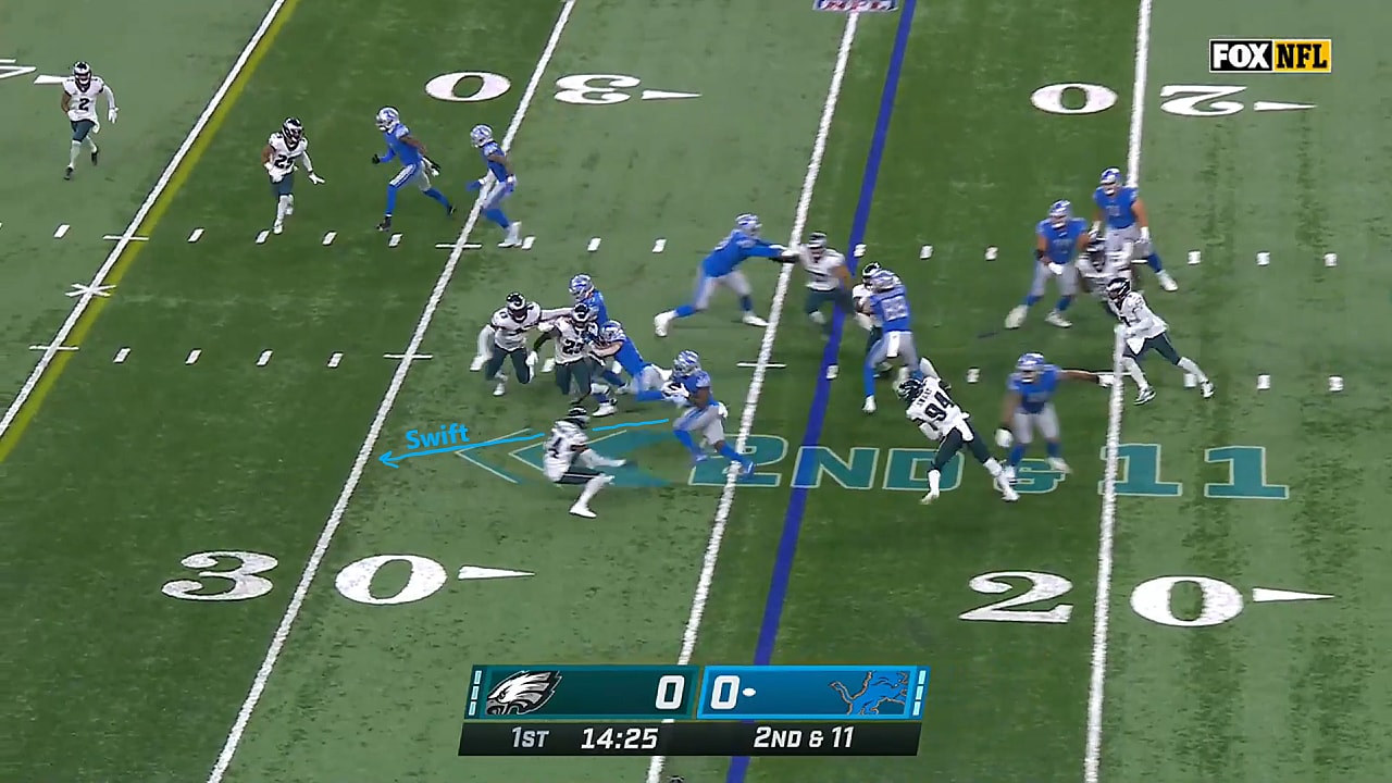 Swift had a very similar play against the Eagles where he just ran straight between guys for 50 yards: