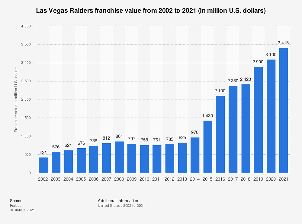 But Mark Davis might be laughing last. The Raiders moved to Las Vegas after the 2019 season and the value of the franchise has increased by nearly $1 billion since the team received approval from the NFL to move to Nevada. Since 2014, Davis’ Las Vegas Raiders franchise has tripled in value and is the 29th most valuable sports franchise worldwide. Mark Davis took over ownership after his Hall of Fame father Al Davis died in 2011.