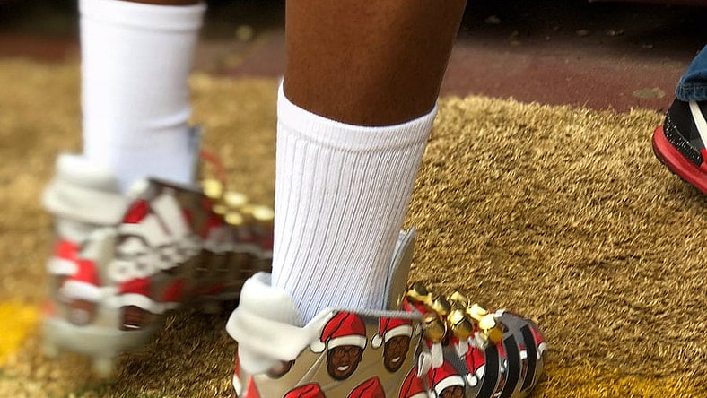 Von as Santa. Bow on top. Just tremendous. Really, they don’t even look like cleats. That’s a job well done by Miller.