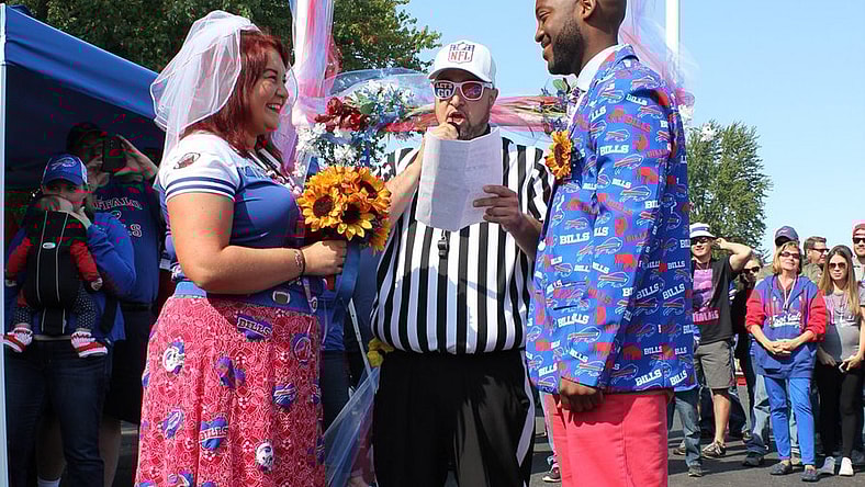 Talk about being Buffalo Bills diehards. Kaitlyn Floyd and Gerald Holmes were married Outside of New Era Field in Buffalo on Sunday morning, showing themselves to be nothing less than huge fans of the long downtrodden team.