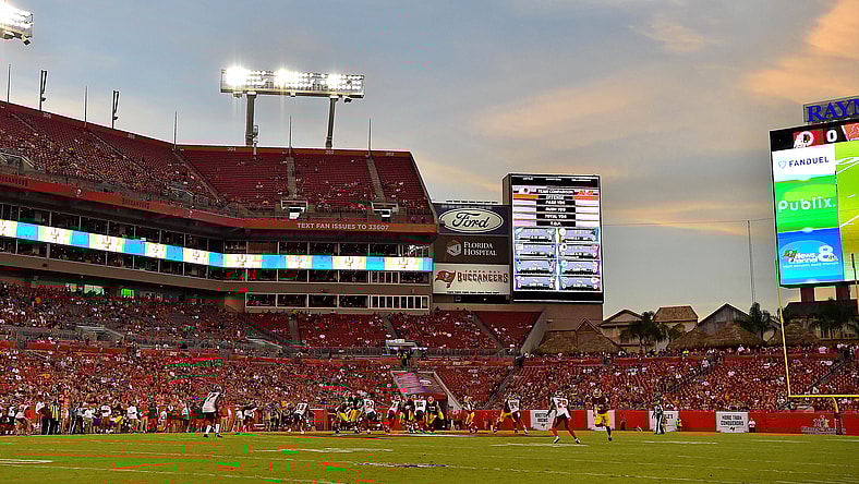 Goalposts down in Tampa before the game for a quick fix after netting got caught in high winds. pic.twitter.com/maSxbEdglY
