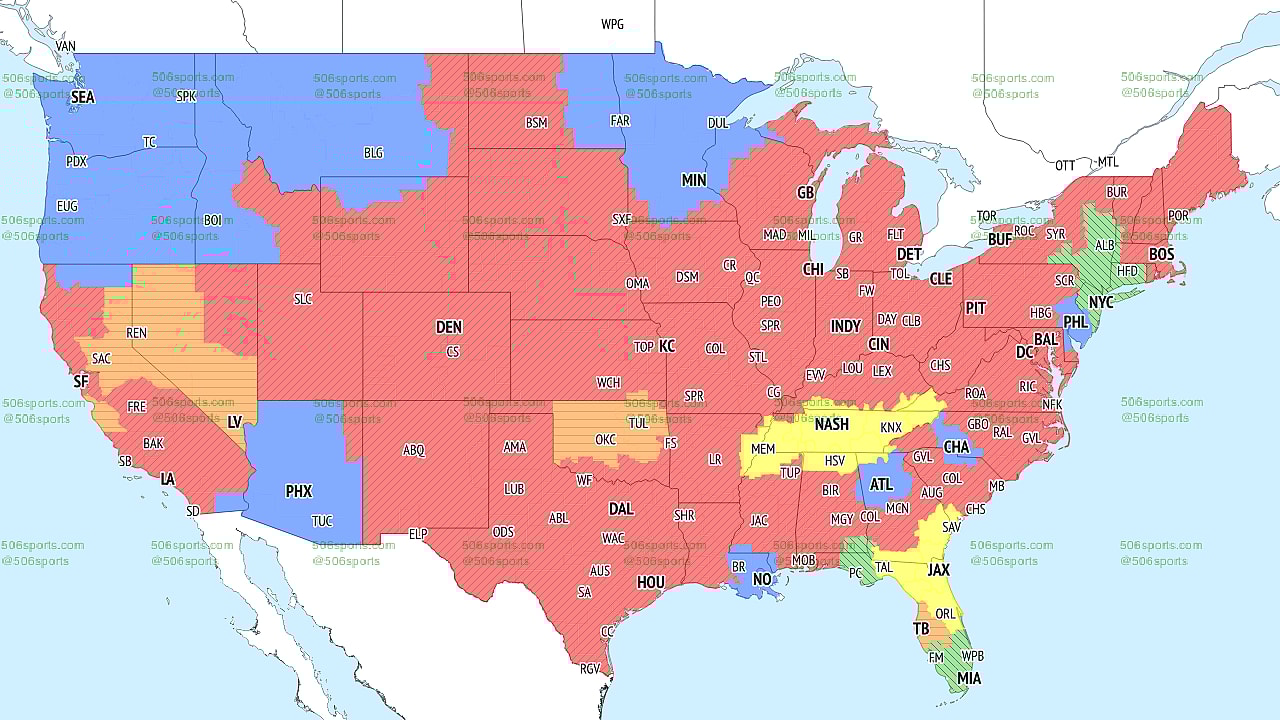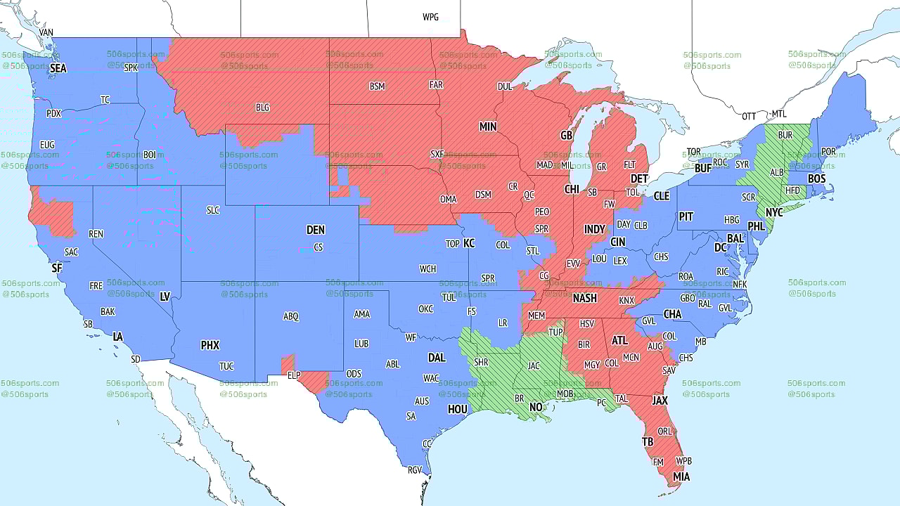 Let’s examine the NFL TV map for Week 14. We’ve also included kickoff times, networks, and broadcaster information. The NFL broadcast maps are available at 506sports.com.
