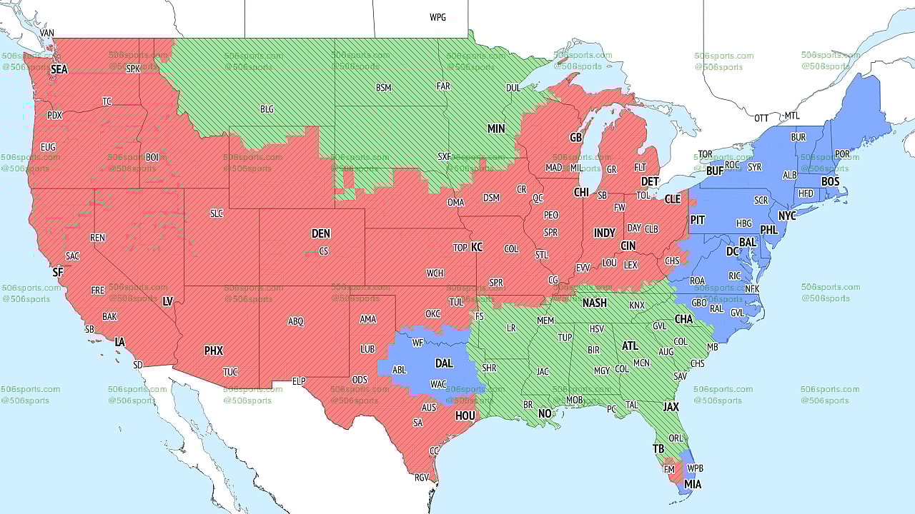 Let’s dive into the NFL TV map for Week 9. We’ve also included kickoff times, networks, and broadcaster information. The NFL broadcast maps are via 506sports.com.