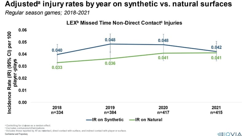 The only research focused on finding that answer comes not from the NFL but from the NFLPA. According to regular season data collected last football season, non-contact injuries for NFL players occurred at a higher rate on artificial surfaces when compared to natural grass during the same period.