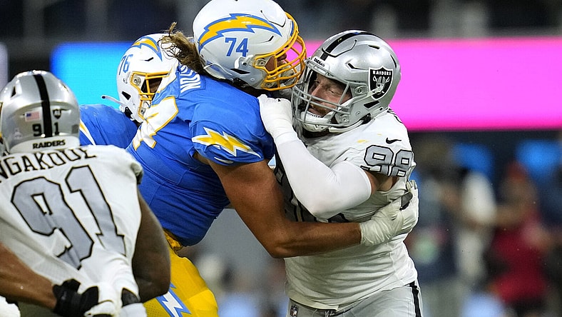 The Las Vegas Raiders defense was tested early and often against the Los Angeles Chargers in the 28-14 loss at SoFi Stadium in Inglewood, Calif.