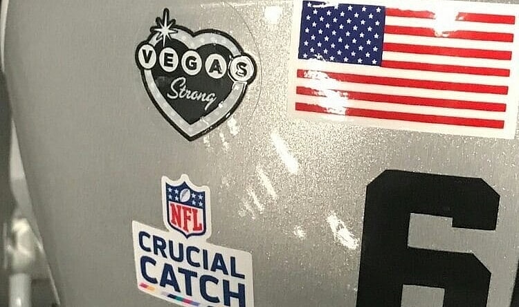 The Raiders have added a custom #VegasStrong decal to their helmets for today’s game.