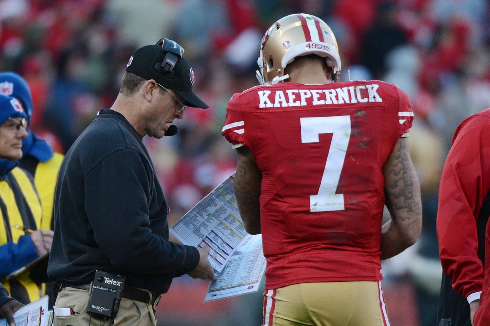 Alex Smith was the first to go down with a Joe Theismann style leg break that could signal the end of his career. This was followed just a week later by Colt McCoy suffering a broken right fibula against the Philadelphia Eagles. With Mark “butt fumble” Sanchez as the new starter by default, the ‘Skins picked up Josh Johnson to fill out their depth chart. Simply put, Kaepernick is a better player than Johnson or Sanchez and would upgrade the position immediately.