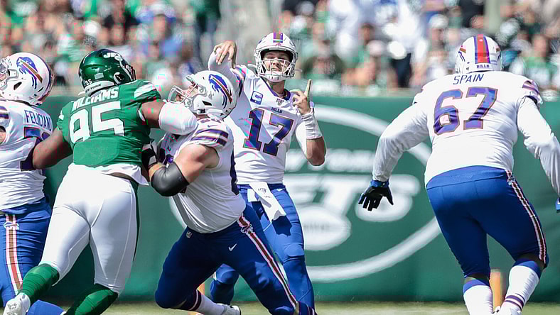 It did not start out well Week 1 against the division-rival New York Jets. Allen turned the ball over four times in the first half alone. That included this pick-six and a horrible fumbled snap on fourth down.
