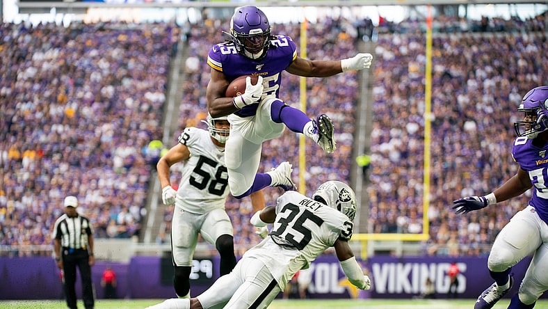 The Minnesota Vikings are beating up on the Oakland Raiders this Sunday, and in the third quarter rookie Alexander Mattison got in on the scoring action.