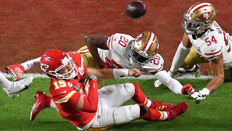 Kansas City Chiefs quarterback Patrick Mahomes was darting toward the end zone in the first quarter of Super Bowl LIV when San Francisco 49ers safety Jimmie Ward came crashing in with a massive hit.