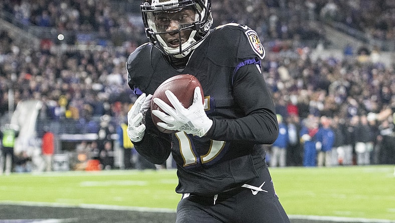 Down 14-3 late in the second quarter, rookie receiver Marquise Brown answered the call. Check out this absolutely insane 38-yard catch for Brown on a YOLO pass from the struggling Lamar Jackson.