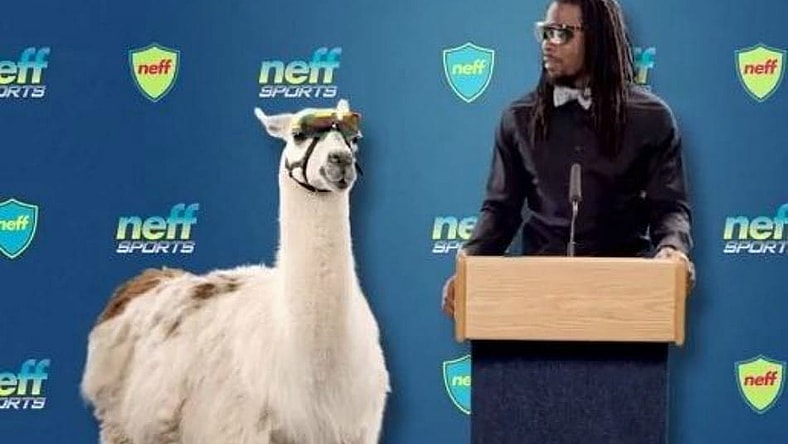 However, in Thursday’s presser, Sherman’s llama “Spartacus” stole the show, bashing the furry boot wearing New England Patriots’ quarterback Tom Brady.