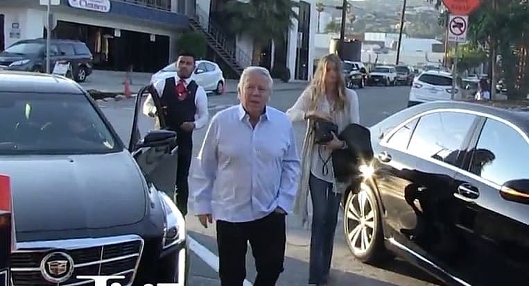 New England Patriots owner Robert Kraft was caught out in West Hollywood on a date with his 34-year-old girlfriend, ex-model Ricki Noel Lander, when reporters approached him loaded with questions.