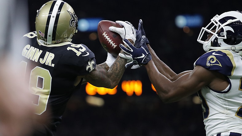 The New Orleans Saints speedster got loose deep down the right side of the field on a second-and-12. Drew Brees unleashed a bomb, and then Ginn rose up to make the huge play.