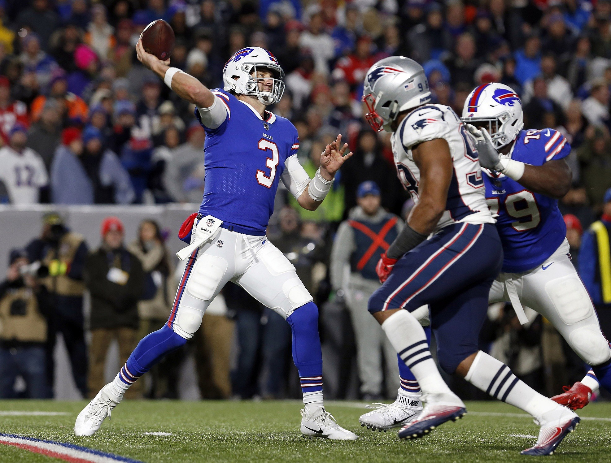 Buffalo’s defense was really strong most of the night. Tom Brady was playing without any running game to speak of. Buffalo got to him a few times, and until the fourth quarter held the Pats to just 12 points and no touchdowns.