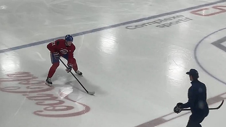 While the #Habs are on their western road swing, Kaiden Guhle is here in Brossard skating.
