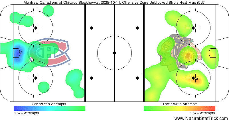 - The Blackhawks held an edge in shots at 5v5, but the Habs had a significant advantage in high-danger scoring chances. (11-3, 78.6%)