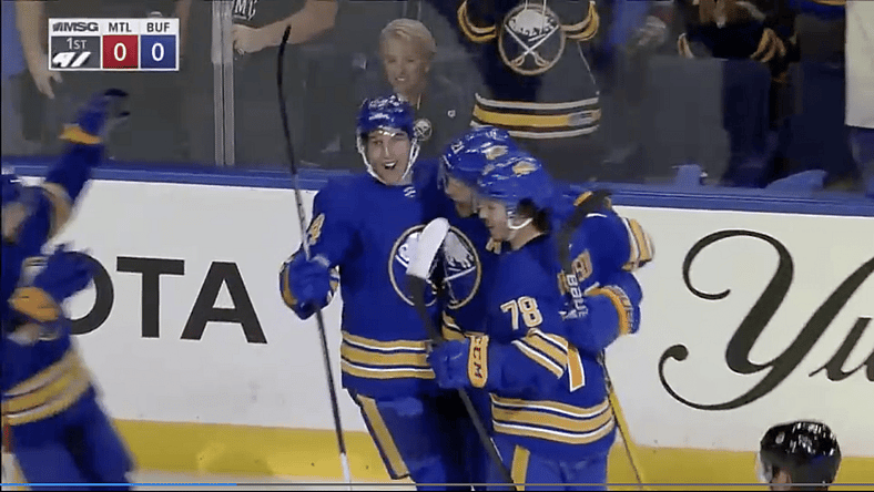 Sabres forward Kyle Okposo turned back the hands of time and started the goal barrage 6:40 into the game after a drive into the zone by Dylan Cozens pulled the Habs defensive coverage out of position. Okposo received the puck at the top of the right circle and beat a screened Samuel Montembeault glove side to give Buffalo the early lead.