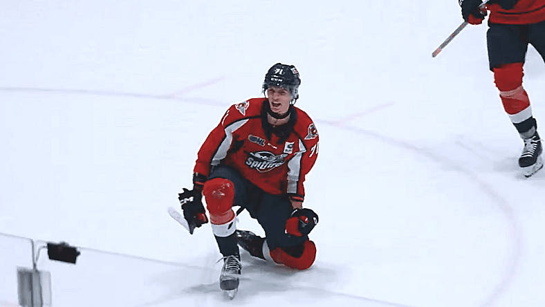 He played with the team’s top forwards on the powerplay, where he ended up scoring six goals and 13 assists. More often than not, he was used as a net-front presence, where he served as a perfect screen for a team overflowing with talent. For what it’s worth, the Spitfires scored on almost 25 percent of their powerplays last season. Nesbitt also scored two shorthanded goals, displaying a certain amount of versatility in the process.