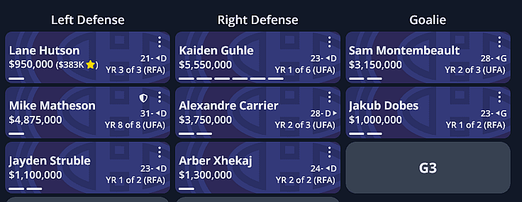 For now, we’ll work with the players that are currently in the organization. This means we had to sign a few restricted free agents, including Jayden Struble, Emil Heineman, and Jakub Dobes. They could end up making a little more money than what I gave them, but Canadiens general manager Kent Hughes tends to have a rather sharp pencil when discussing contract extensions.