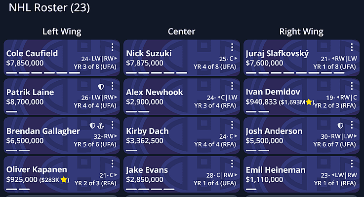 With Demidov in place, the clear issue is the lack of a bona fide No.2 centre. Adding such a player to the lineup which would finally give head coach Martin St-Louis a few more options from an offensive standpoint, while also removing some pressure on Juraj Slafkovsky, Nick Suzuki, and Cole Caufield on the first line.