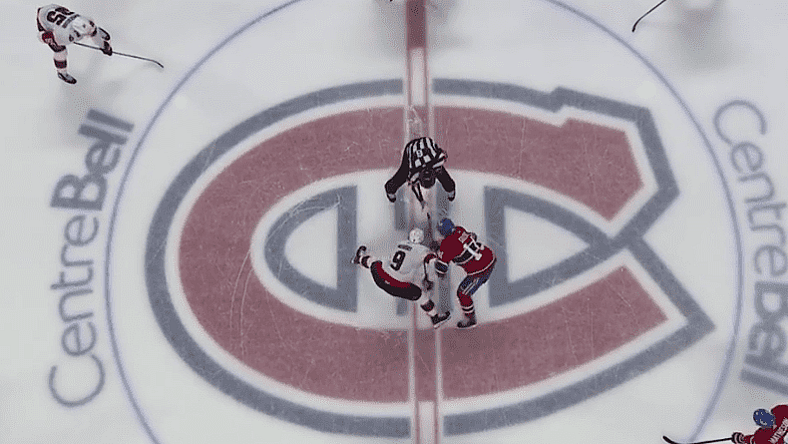 Rafael Harvey-Pinard was listed as the team’s fourth-line centre on the official game sheet, though it should be noted that the 25-year-old forward had never played as a centre, not even while playing Junior hockey. This meant that Jake Evans was taking the draws on the fourth line, then quickly making his way to the bench to allow a player from the fourth line to take their regular shift.