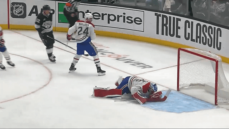 The Canadiens briefly tied the game when Mike Matheson’s point shot deflected off two Kings before making its way to the back of the net. It was one of the ugliest goals we’ve seen this year, but beggars can’t be choosers.
