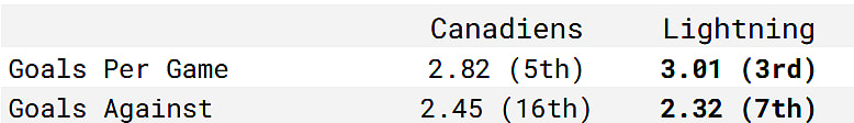 Both the Canadiens and the Lightning are great at scoring goals, while the latter are better at preventing pucks from ending up in their net.