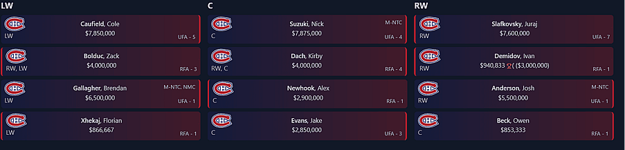 All Montreal Canadiens salary cap information via Cap Wages, and AFP Analytics.