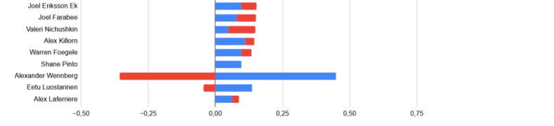 In addition, four of those eight players (Wennberg, Coleman, Couturier and Jack Drury) are PK workhorses who have averaged more than 2 minutes of PK time per game, but their relative on-ice results have not been good. Of those with similar 5v5 stats, only Stone, Schmaltz and Wennberg are scoring at, at least, 50-point pace over 82 games.
