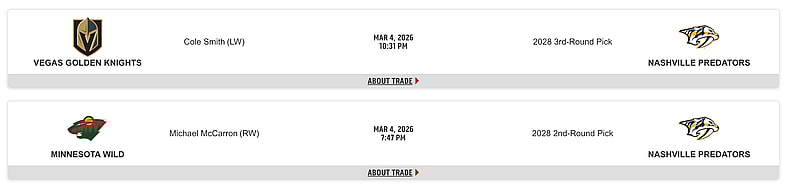 The Nashville Predators pulled off a pair of trades yesterday. Nothing major, but they’re making moves:
