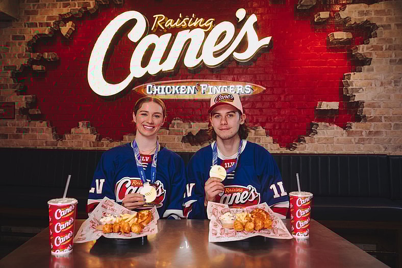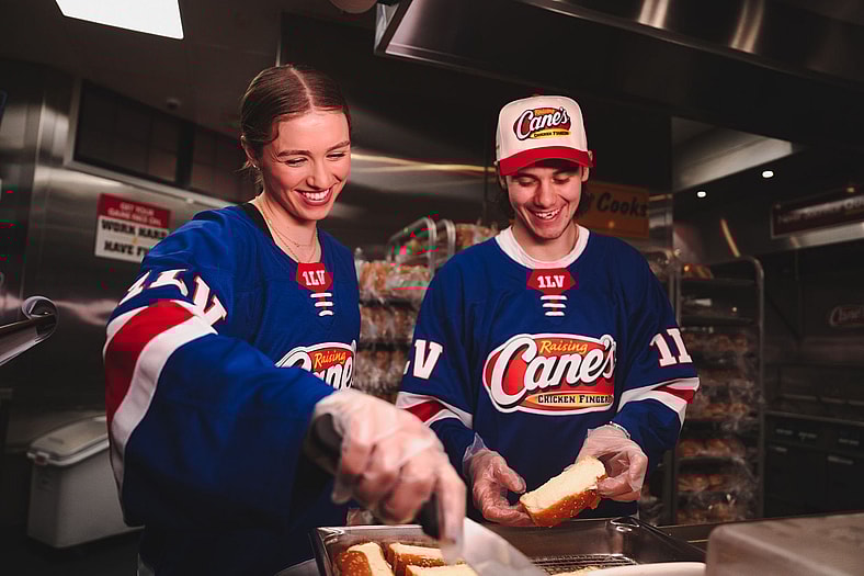 He and USA women’s star Caroline Harvey clocked in for a shift at Raising Cane’s Global Flagship in Times Square to snap selfies, sign autographs and serve lucky customers.
