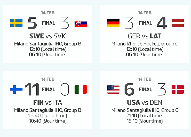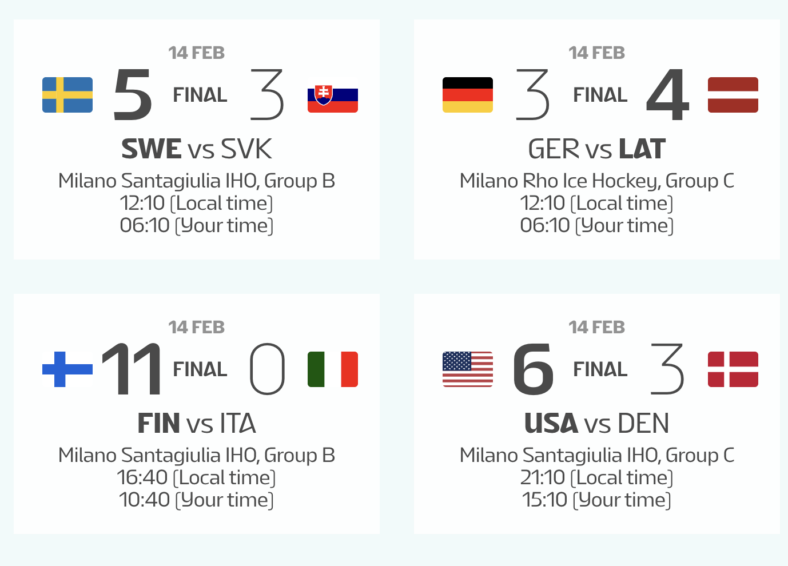 As it turns out, the outcome for Sweden would have been the same either way. They scored 11 goals against Italy, which actually allowed Simon Nemec and Slovakia to win their group. now, Sweden has a play-in to the final rounds of the Men’s ice hockey Olympic tournament. Here’s yesterday’s scores: