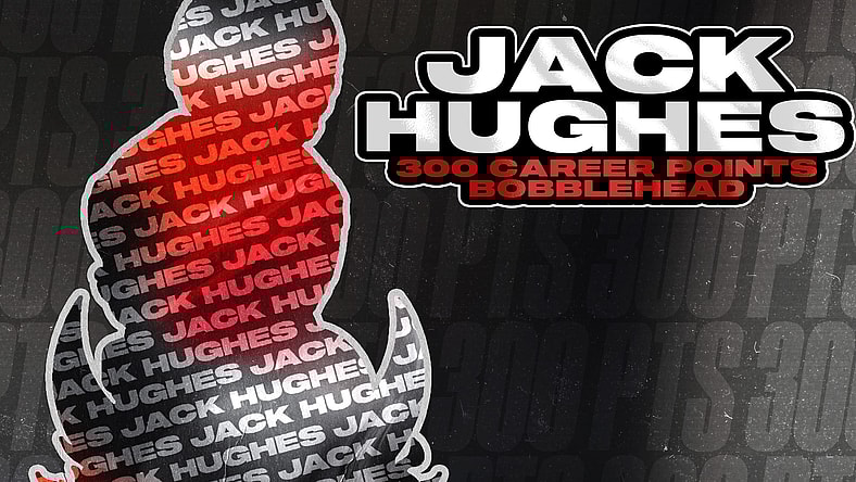 In celebration of registering his 300th NHL point, FOCO is releasing a limited bobblehead in celebration of Jack Hughes’ milestone.