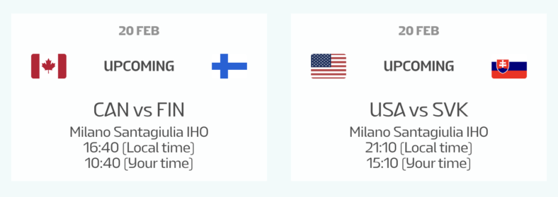 In Milan, it was a full day off for the Men’s division of Olympic hockey. Here’s what’s on the slate in the semifinal matchups today: