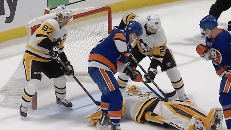 ELMONT, NY — The New York Islanders found themselves down 1-0 to the Pittsburgh Penguins eight minutes into the contest. They had been heavily outshot over that span and had not been able to get many shots towards Penguins netminder Casey DeSmith.