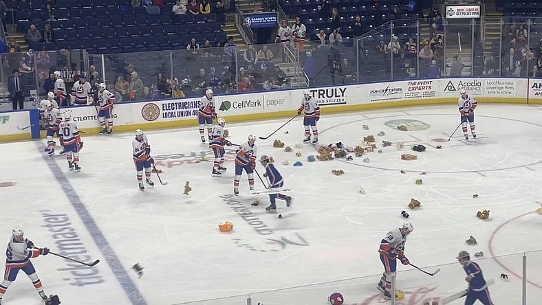 BRIDGEPORT, CT–On Saturday night, the Bridgeport Islanders hosted their annual Teddy Bear Toss night in partnership with Yale New Haven Children’s Hospital. Fans had the opportunity to throw stuffed animals onto the ice after the first Islanders goal of the contest, and all the Teddy Bears were collected to benefit those in the community in need this holiday season.