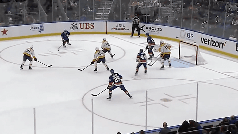 The Islanders did have what appeared to be a goal halfway through the first period, but Lankinen was able to keep the puck from completely crossing the goal line. Had the Islanders had a few bodies in front of goal on the play, there’s a good chance one of them could have poked the loose puck in.