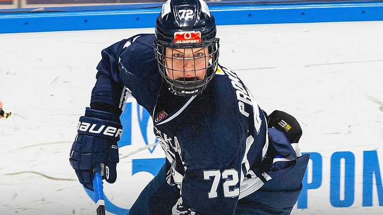 Prokhorov, 18, is a 6’6 monster who scored 20 goals and 27 points in the MHL. EliteProspects gave him the highest-possible marks for his physicality, with a strong shot. EP’s Draft Guide’s snippet: “A missile on skates, he’s a violent forward who looks to throw crunching hits, fight to the net, and occasionally snipes off the rush. Sense is the concern.”