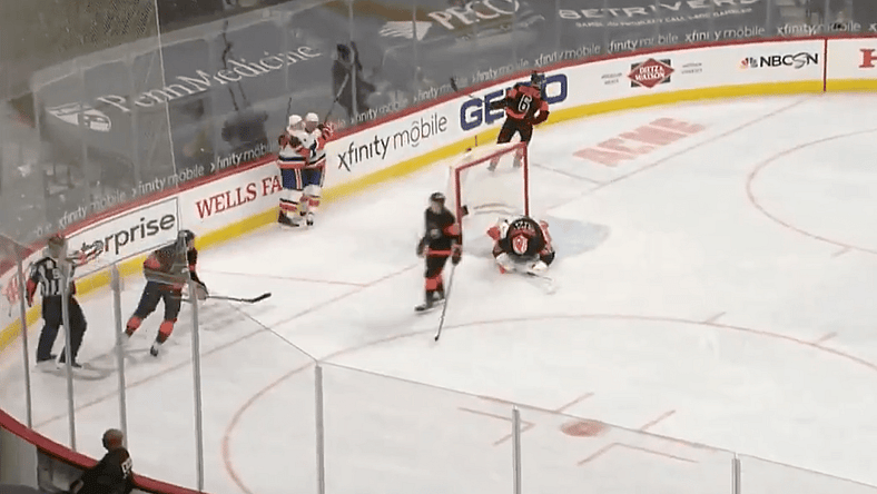 The New York Islanders defenseman drove to the net and went to pass the puck off to Jordan Eberle, who he had on his wing. The pass hit off Sanheim’s stick and into the net for the game’s only goal. It snapped a 159:29 goal drought for New York.