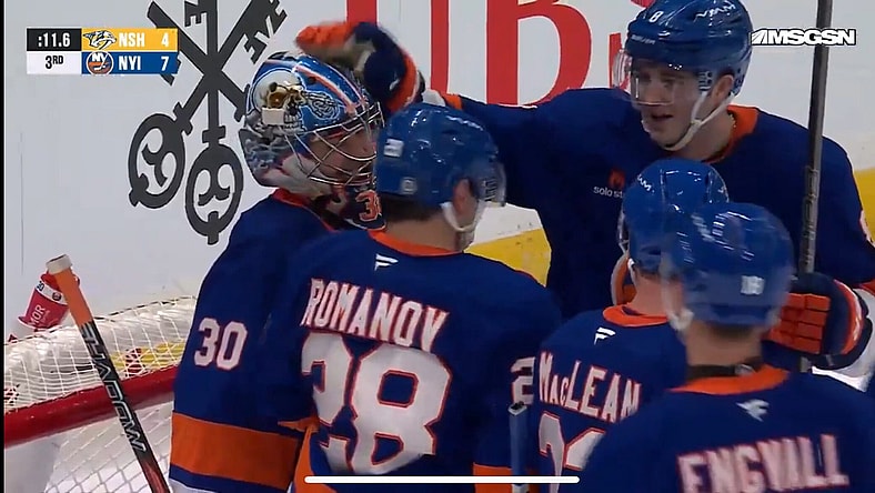 The Islanders’ room was full of smiles after Sorokin’s goal. It also helped that the team scored seven goals and had a quick 3-0 lead.