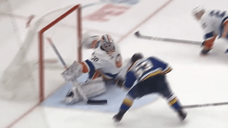 The Blues took advantage of the Islanders’ lackadaisical play in the defensive end, turning a three-man rush into a spectacular cross-crease chance for Jake Neighbors.