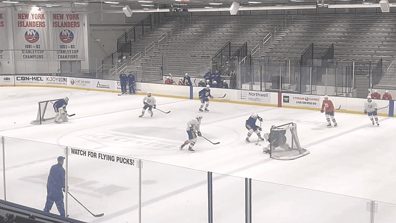 After their routine warmup, the Islanders ran an in-tight three-on-three drill.