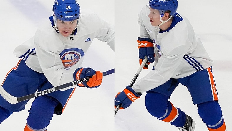 Dufour skated alongside Mathew Barzal and Josh Bailey at Islanders morning skate.