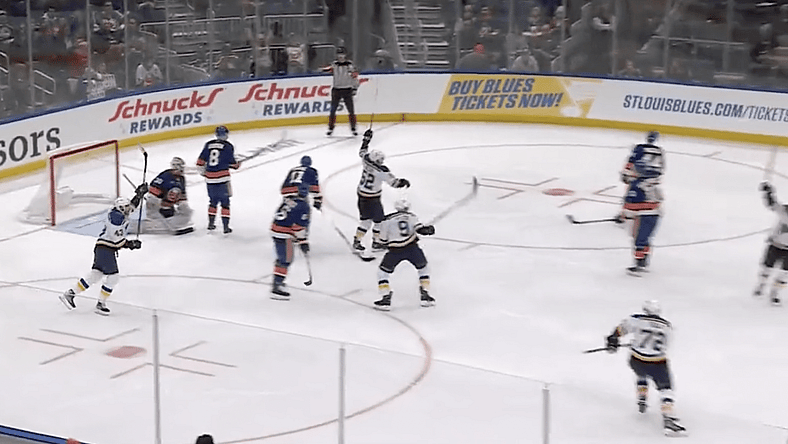 Hudson Fasching scored his first goal as an Islander as he deflected a Matt Martin shot as the Islanders cut the Blues’ lead to 5-3. Martin and Brock Nelson were credited with the assists.